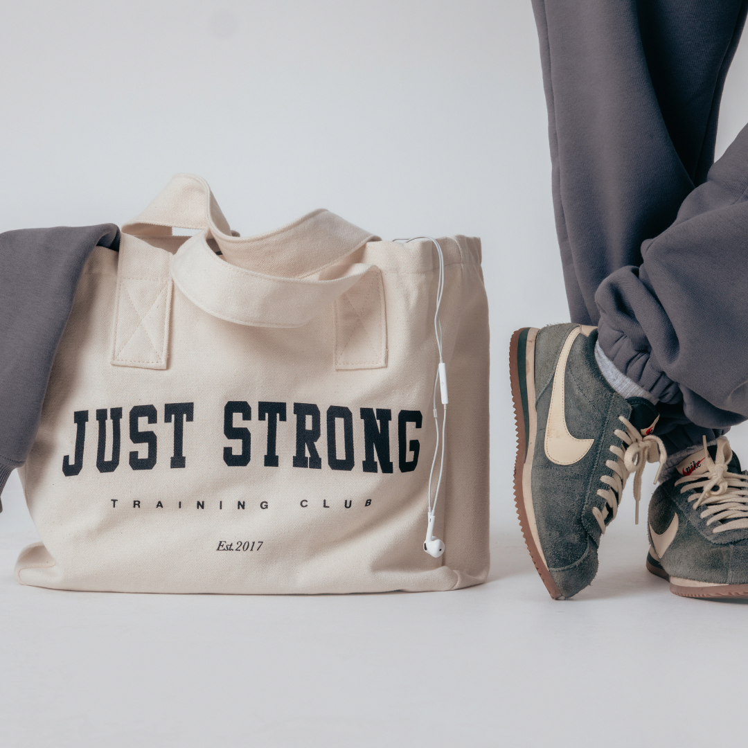 Elevate your style with our natural stone colored, strong cotton tote bag! Perfect for training clubs and everyday use, feel confident and organized with this spacious and sturdy tote. Say goodbye to flimsy bags and hello to reliability and fashion. Get yours today!