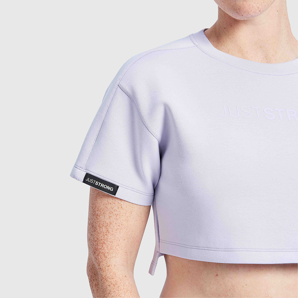 Our Lilac Oversized Athletic Cropped Tonal T-Shirt is made from a super breathable fabric that feels luxurious to the skin. It features a JustStrong detail badge on the arm and a tonal print to the center chest for a minimalistic, quality design. Perfect for any sort of workout, this T-shirt is sure to keep you comfortable and stylish.